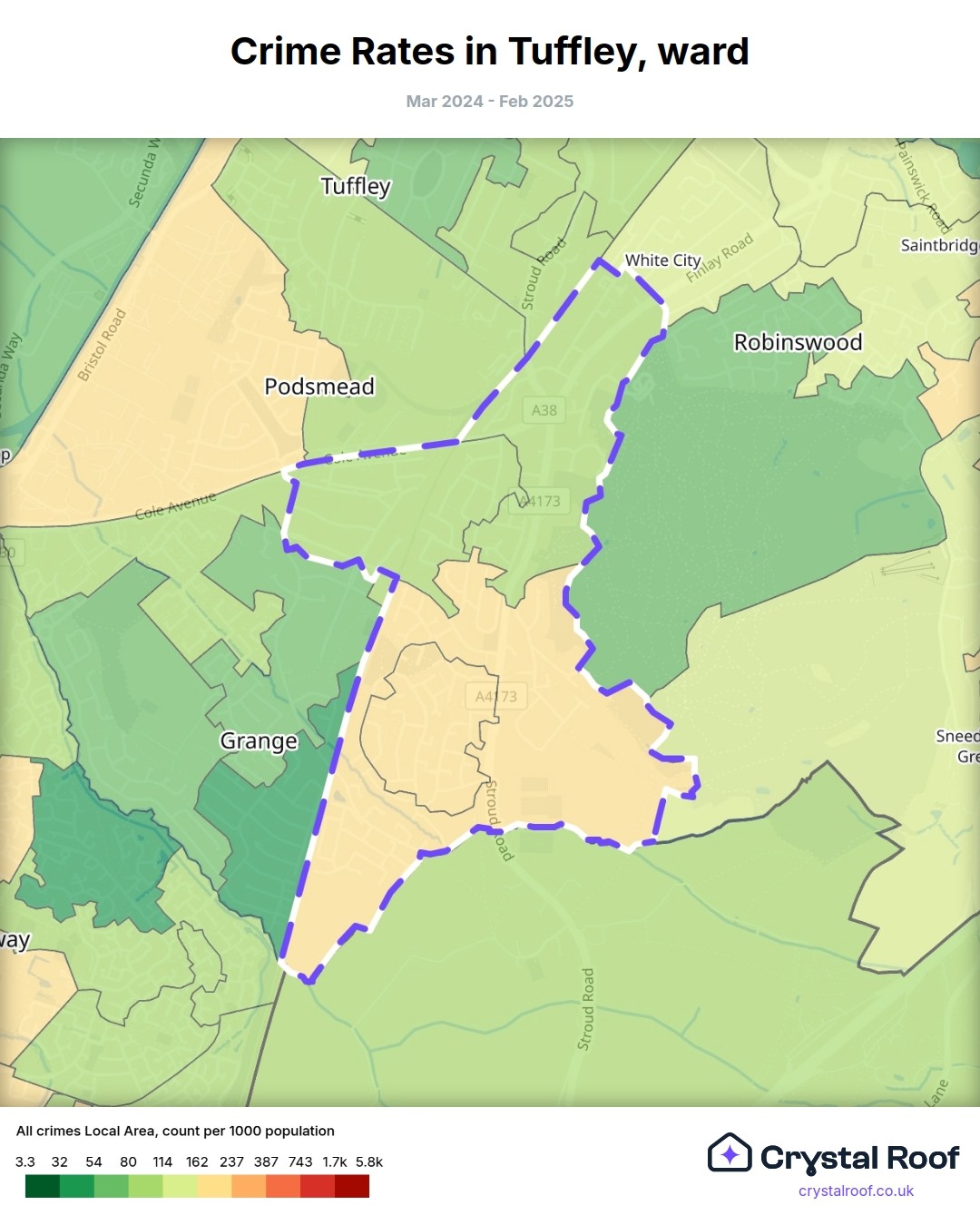 Tuffley, (ward) includes areas with the following crime ratings (see map):