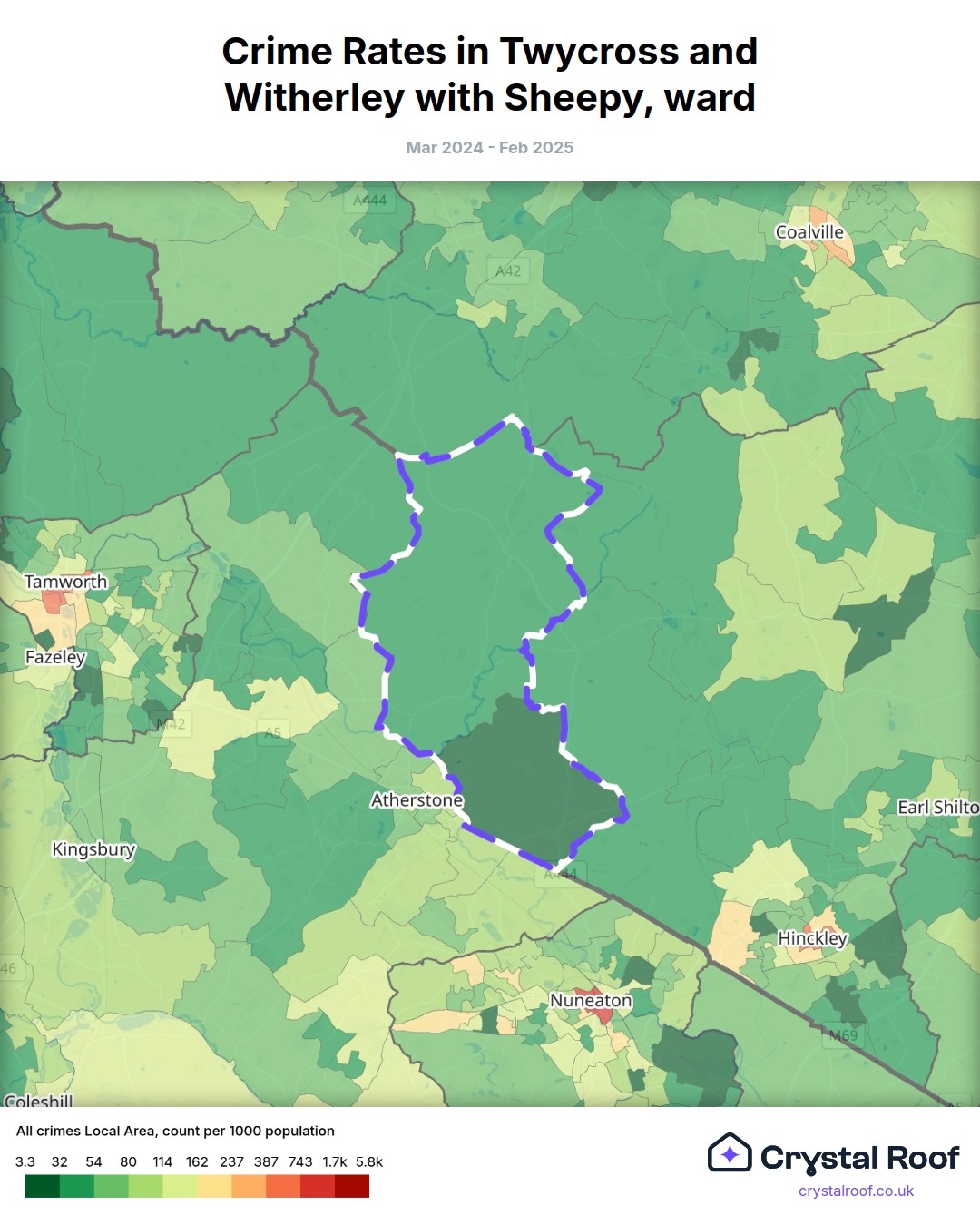 Twycross and Witherley with Sheepy, (ward) includes areas with the following crime ratings (see map):