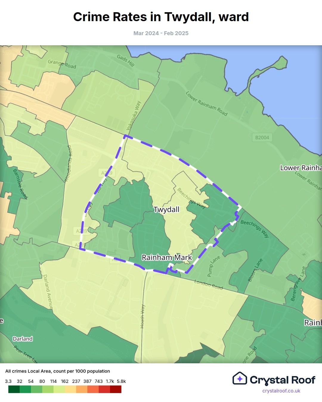 Twydall, (ward) includes areas with the following crime ratings (see map):