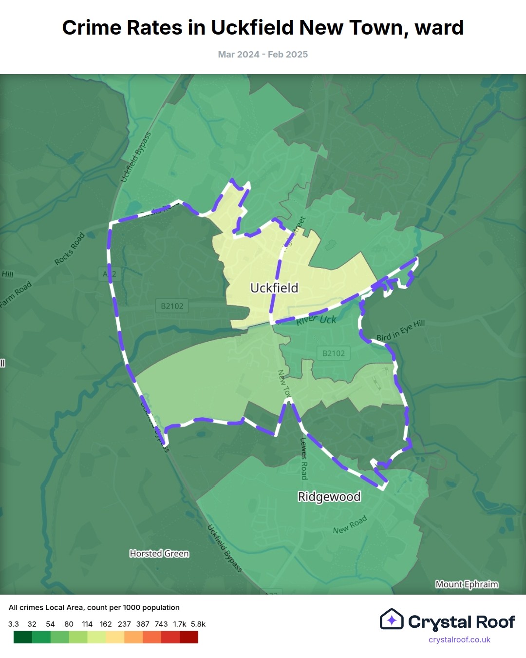 Uckfield New Town, (ward) includes areas with the following crime ratings (see map):