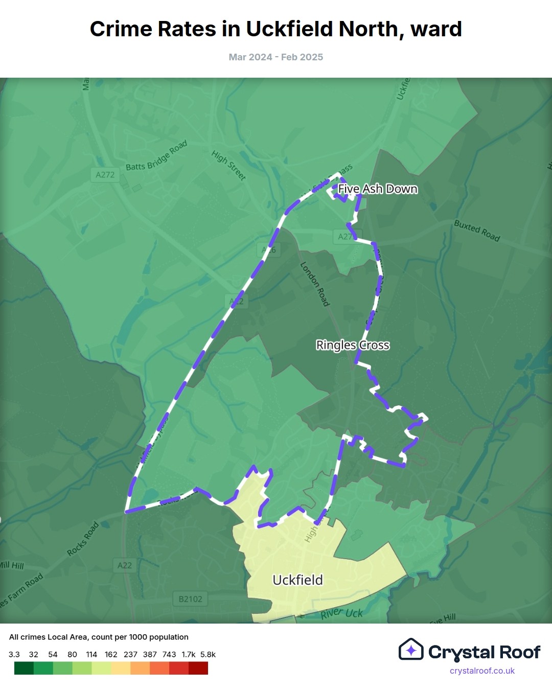 Uckfield North, (ward) includes areas with the following crime ratings (see map):