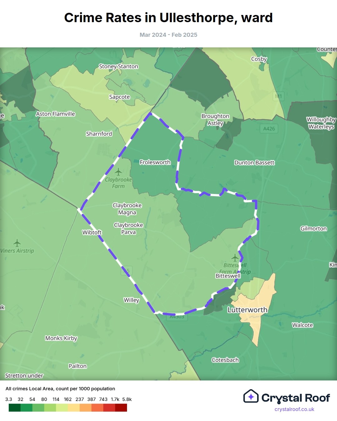Ullesthorpe, (ward) includes areas with the following crime ratings (see map):
