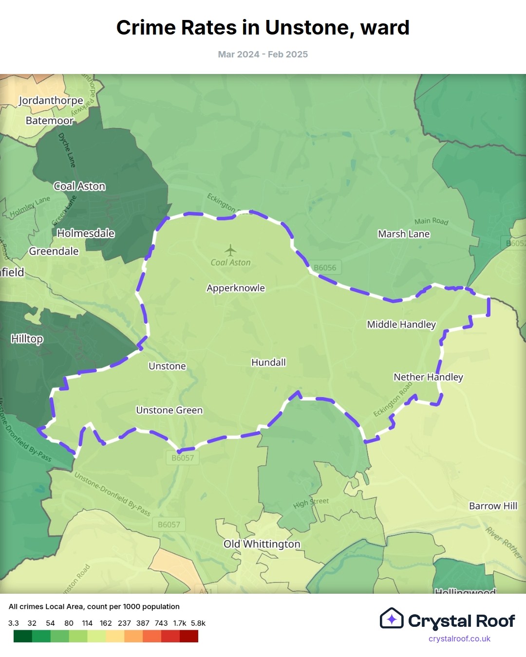 Unstone, (ward) includes areas with the following crime ratings (see map):
