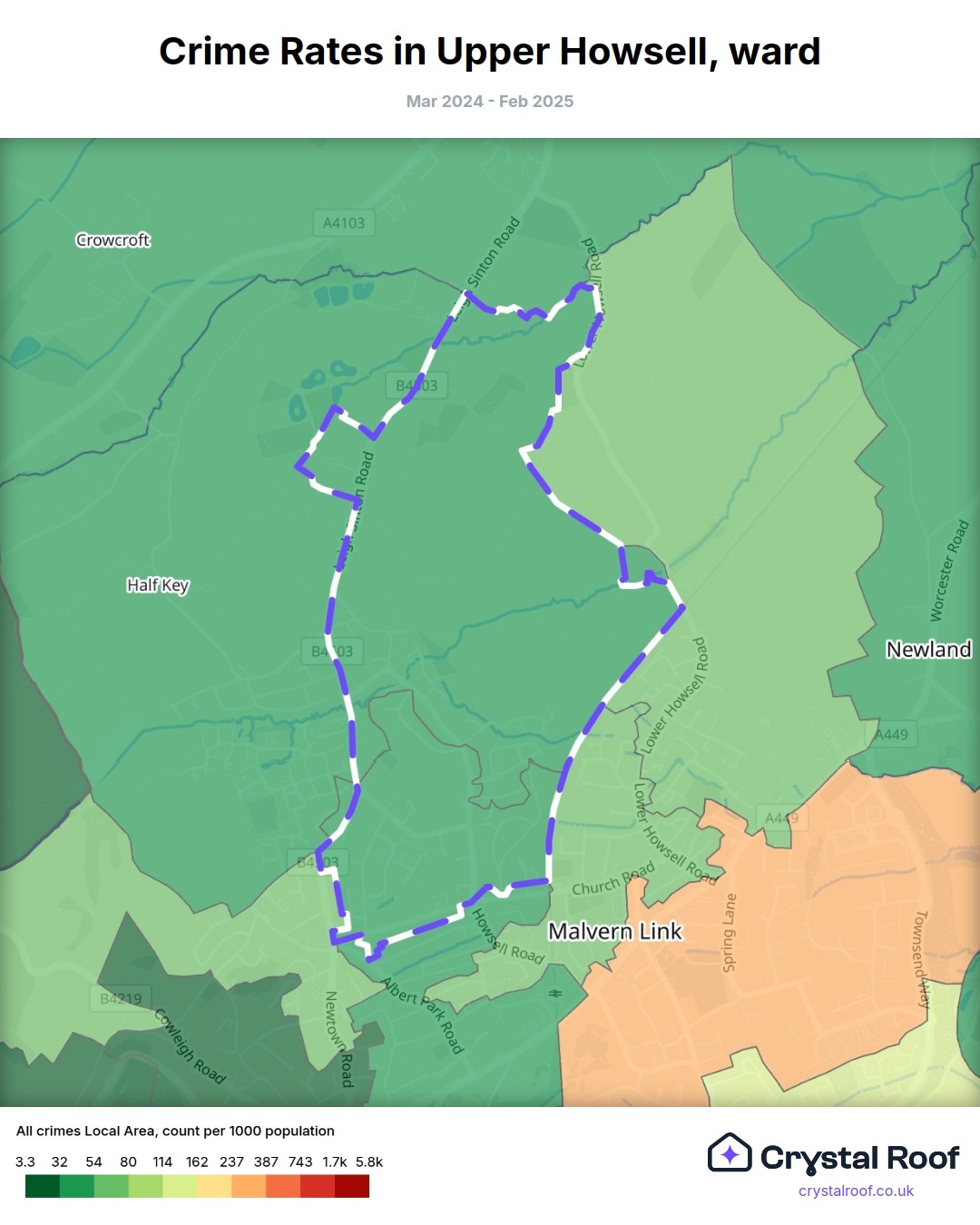 Upper Howsell, (ward) includes areas with the following crime ratings (see map):