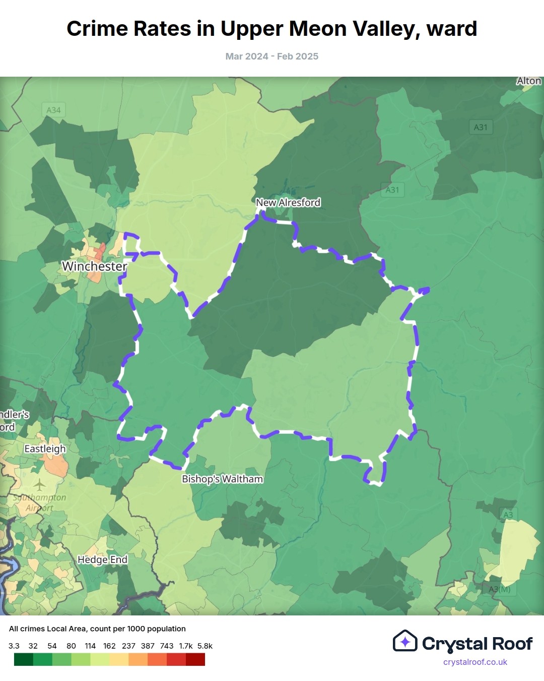 Upper Meon Valley, (ward) includes areas with the following crime ratings (see map):