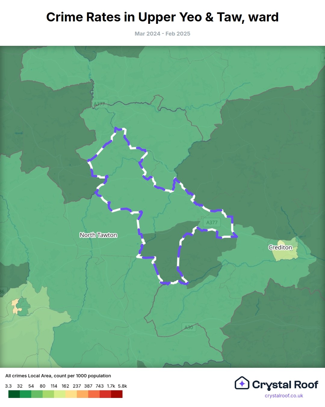 Upper Yeo & Taw, (ward) includes areas with the following crime ratings (see map):