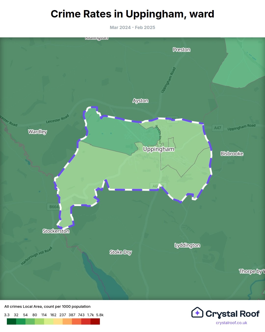 Uppingham, (ward) includes areas with the following crime ratings (see map):