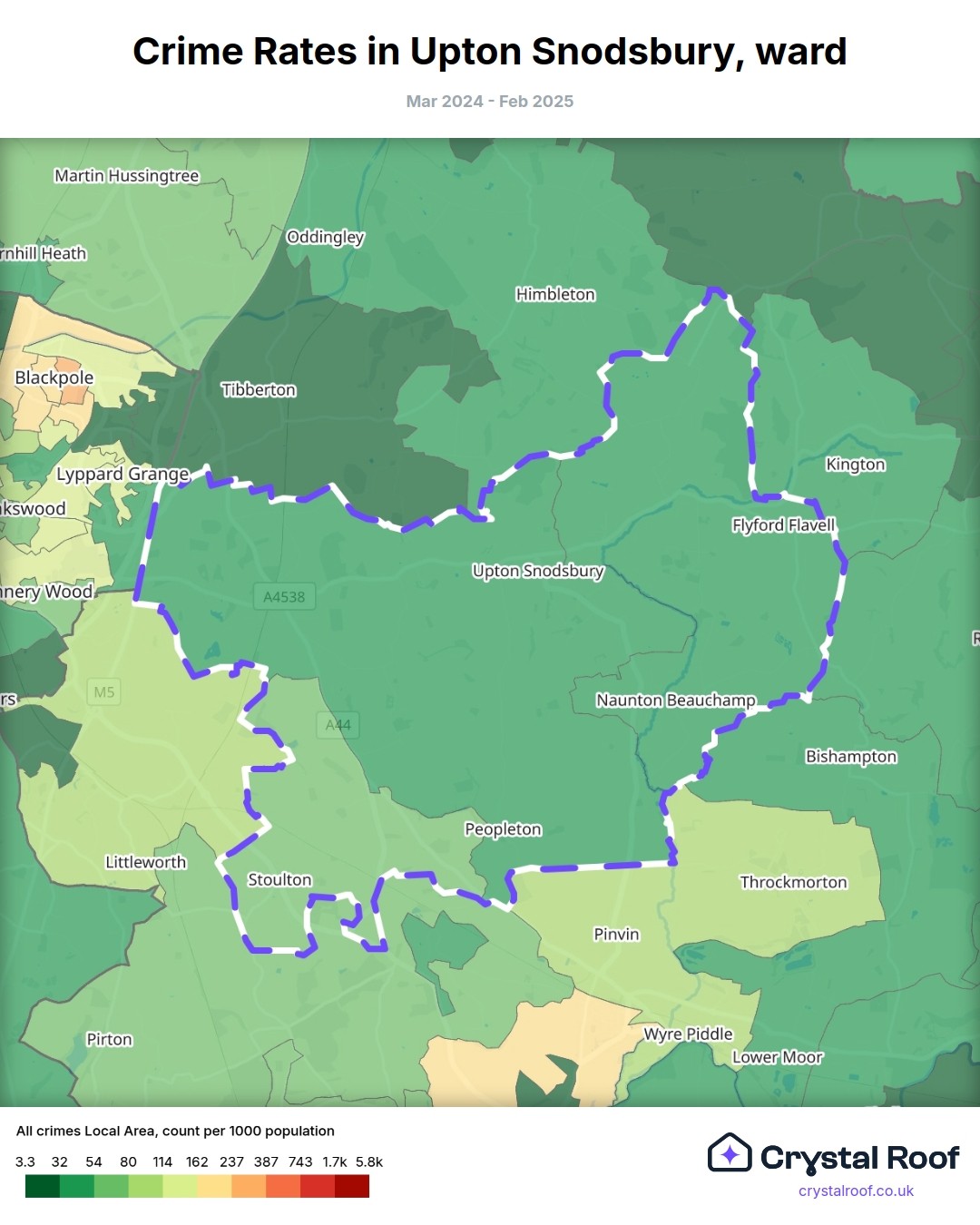 Upton Snodsbury, (ward) includes areas with the following crime ratings (see map):