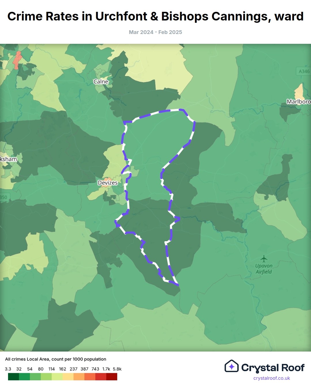 Urchfont & Bishops Cannings, (ward) includes areas with the following crime ratings (see map):