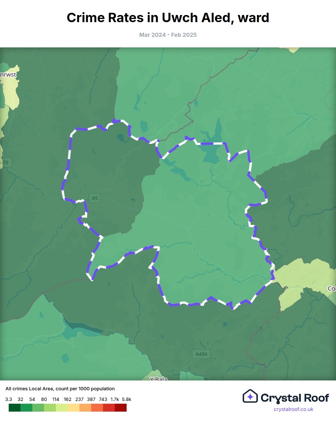 Uwch Aled, (ward) includes areas with the following crime ratings (see map):