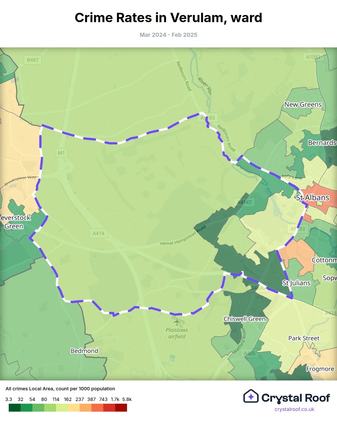 Verulam, (ward) includes areas with the following crime ratings (see map):
