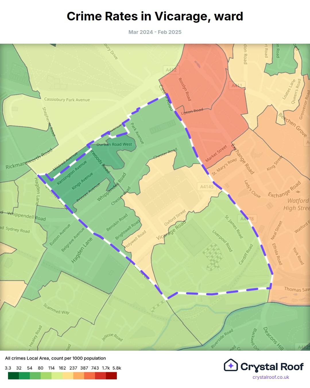 Vicarage, (ward) includes areas with the following crime ratings (see map):