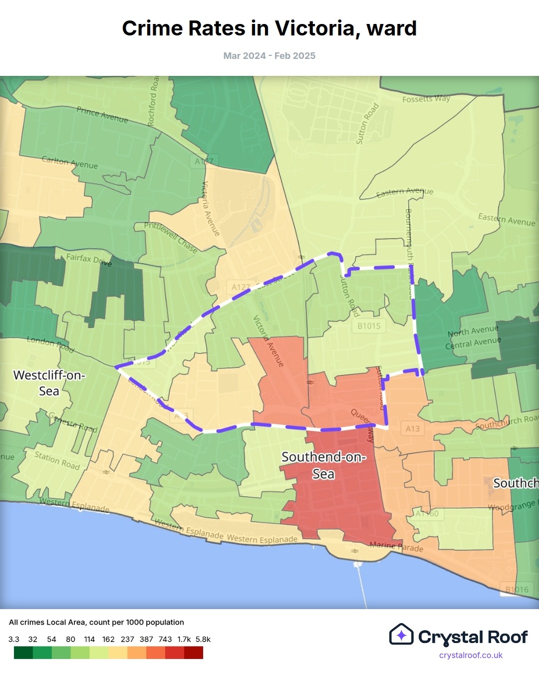 Victoria, (ward) includes areas with the following crime ratings (see map):