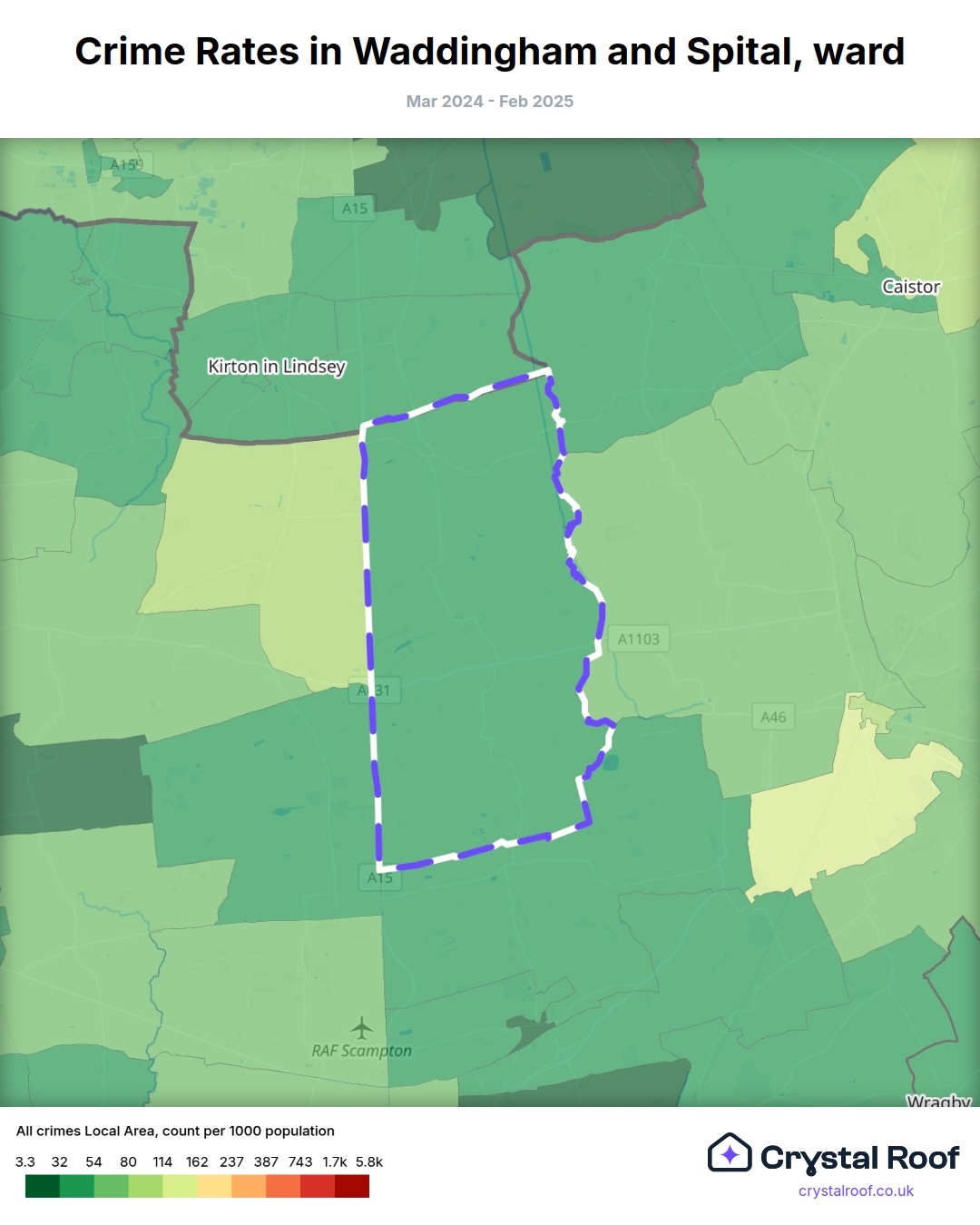 Waddingham and Spital, (ward) includes areas with the following crime ratings (see map):
