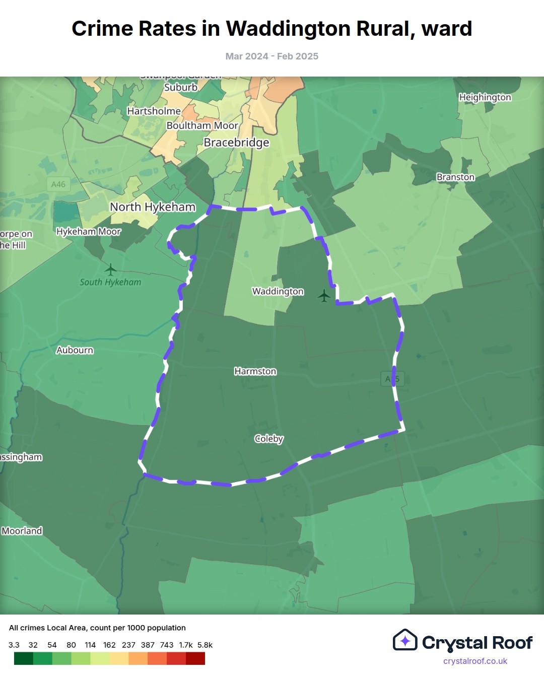 Waddington Rural, (ward) includes areas with the following crime ratings (see map):