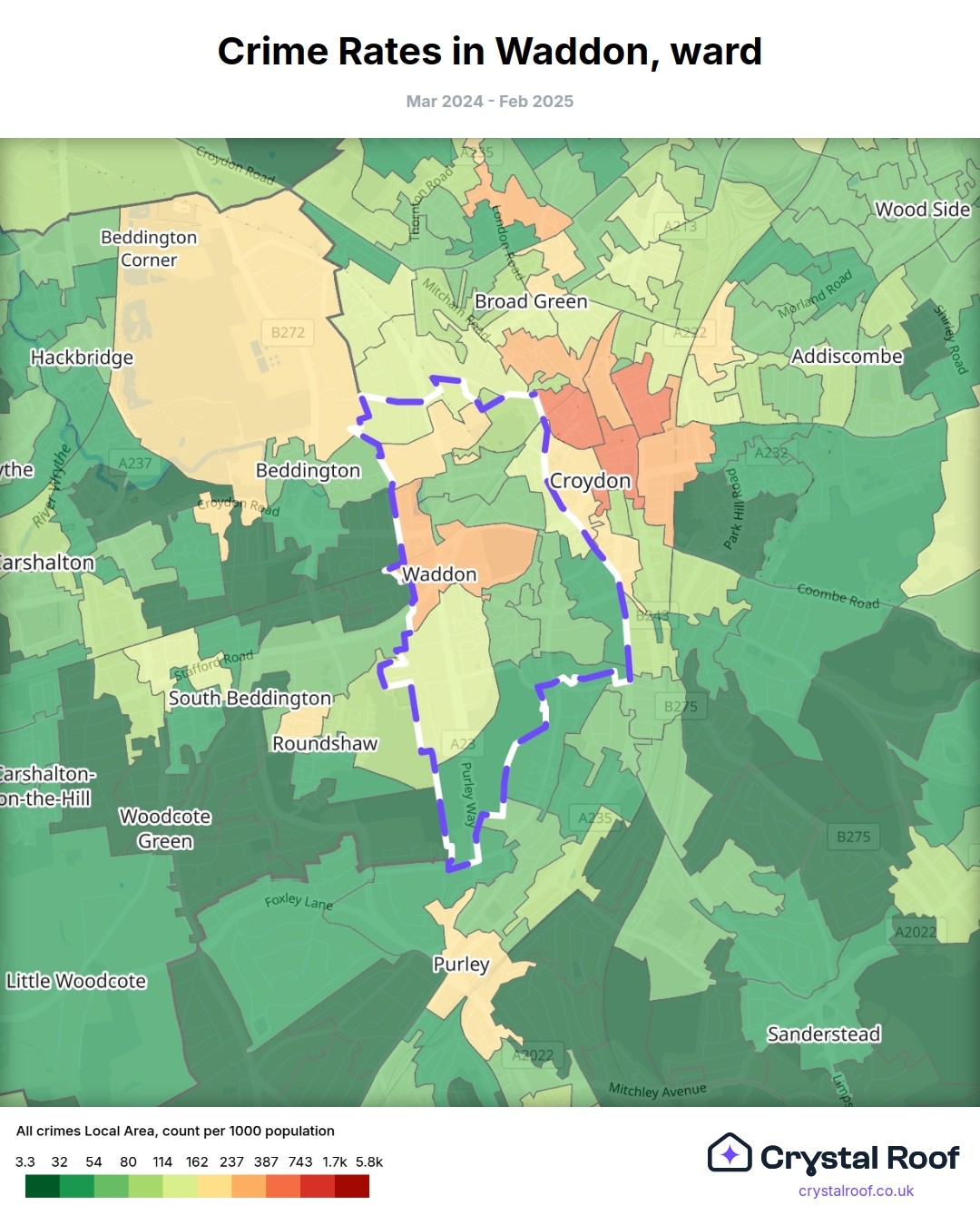 Waddon, (ward) includes areas with the following crime ratings (see map):