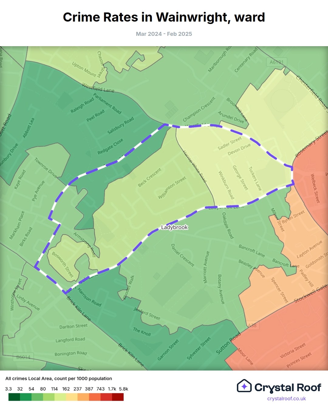 Wainwright, (ward) includes areas with the following crime ratings (see map):