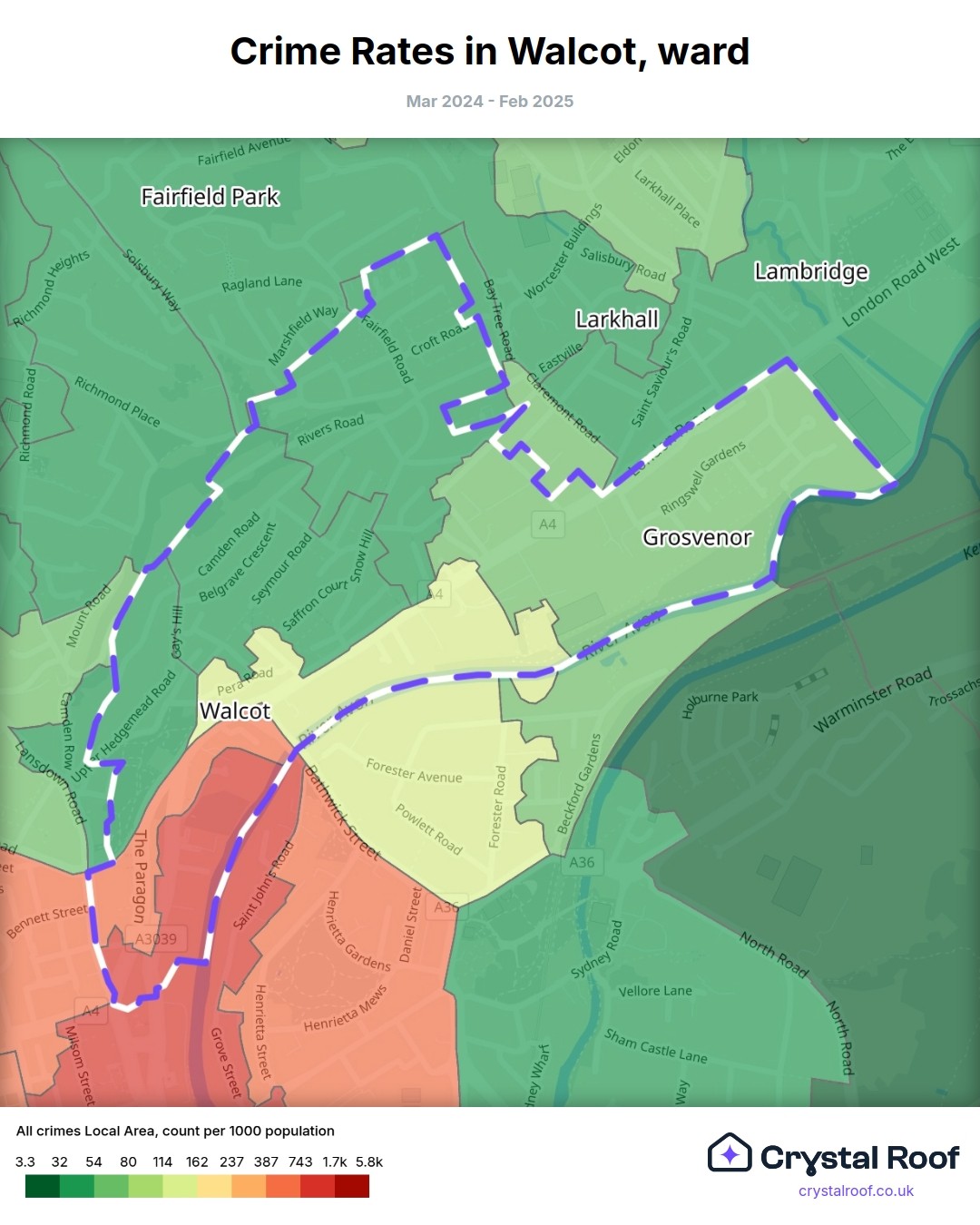 Walcot, (ward) includes areas with the following crime ratings (see map):