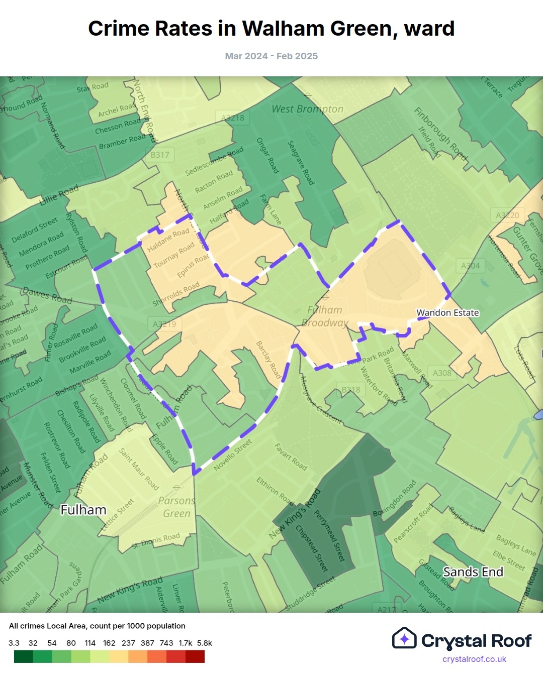 Walham Green, (ward) includes areas with the following crime ratings (see map):