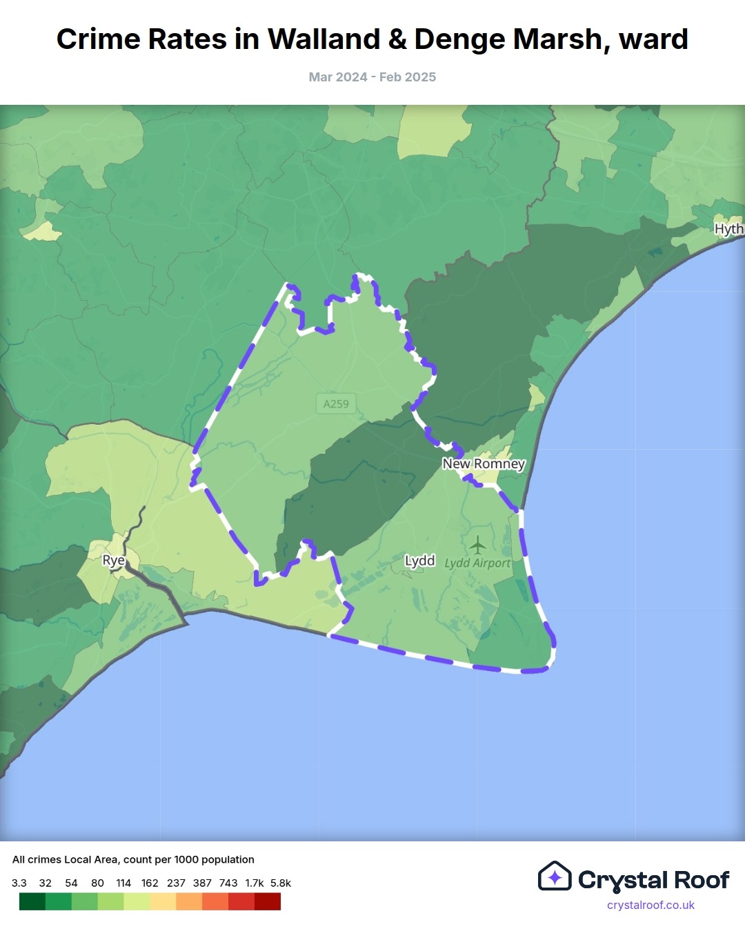 Walland & Denge Marsh, (ward) includes areas with the following crime ratings (see map):