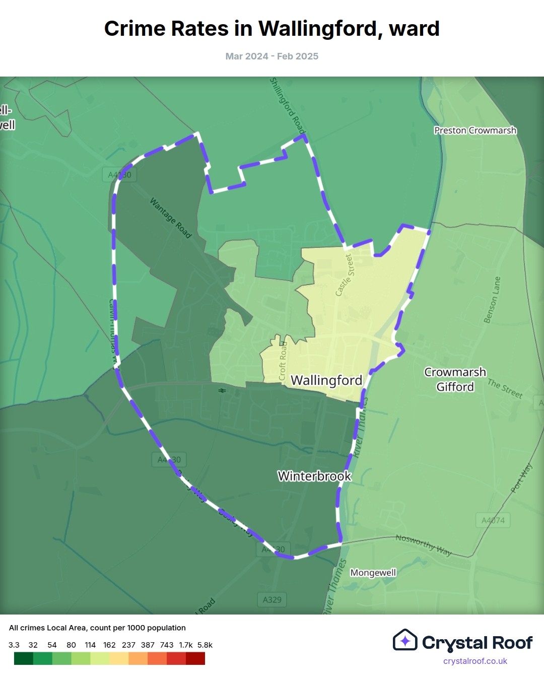 The figures in grey indicate the relative ratings of Wallingford (ward) for a specific crime type compared to other wards in England and Wales.