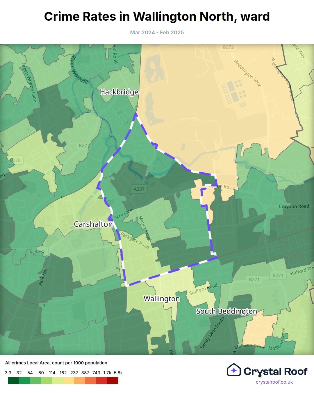 Wallington North, (ward) includes areas with the following crime ratings (see map):