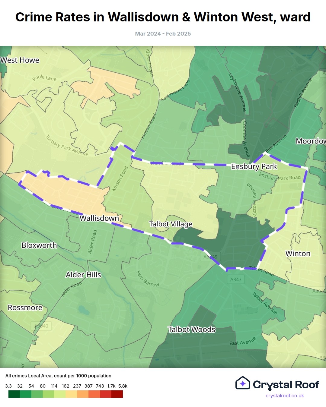 Wallisdown & Winton West, (ward) includes areas with the following crime ratings (see map):