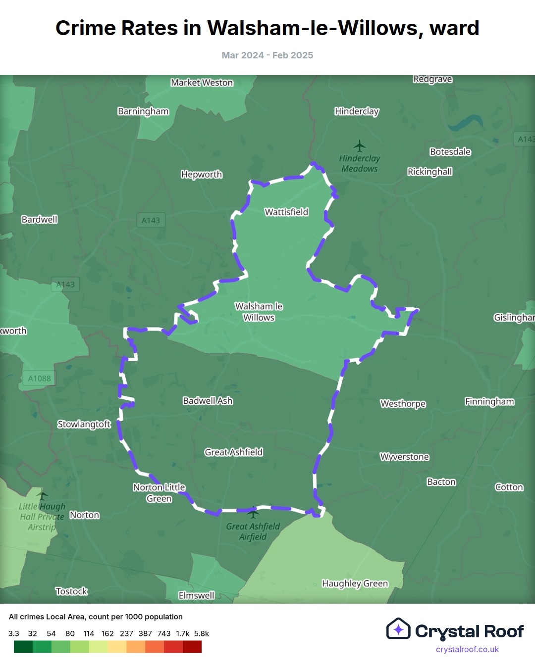 Walsham-le-Willows, (ward) includes areas with the following crime ratings (see map):