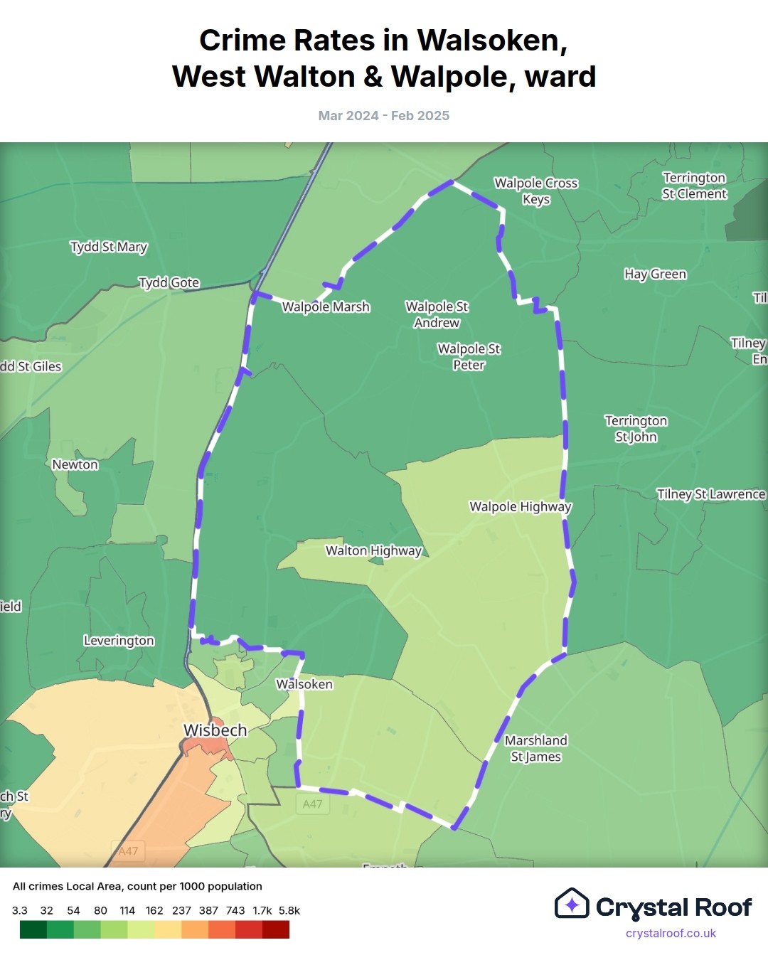 Walsoken, West Walton & Walpole, (ward) includes areas with the following crime ratings (see map):