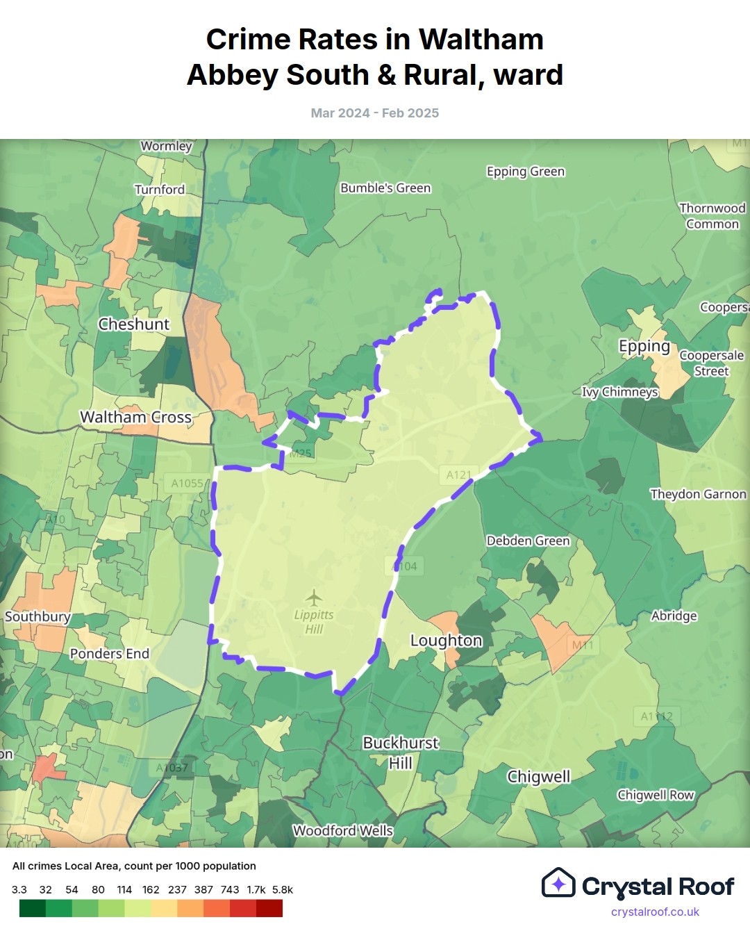 Waltham Abbey South & Rural, (ward) includes areas with the following crime ratings (see map):