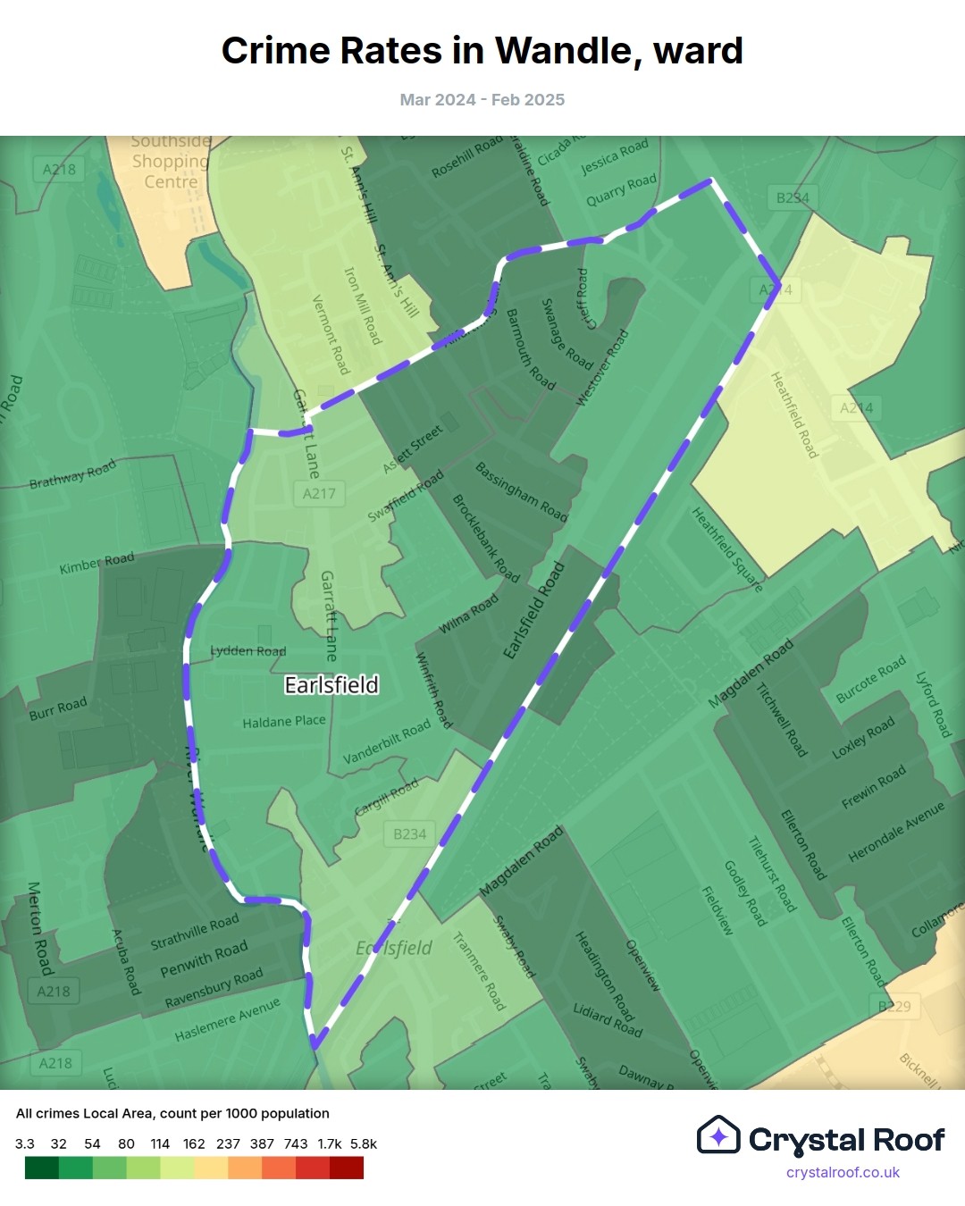Wandle, (ward) includes areas with the following crime ratings (see map):