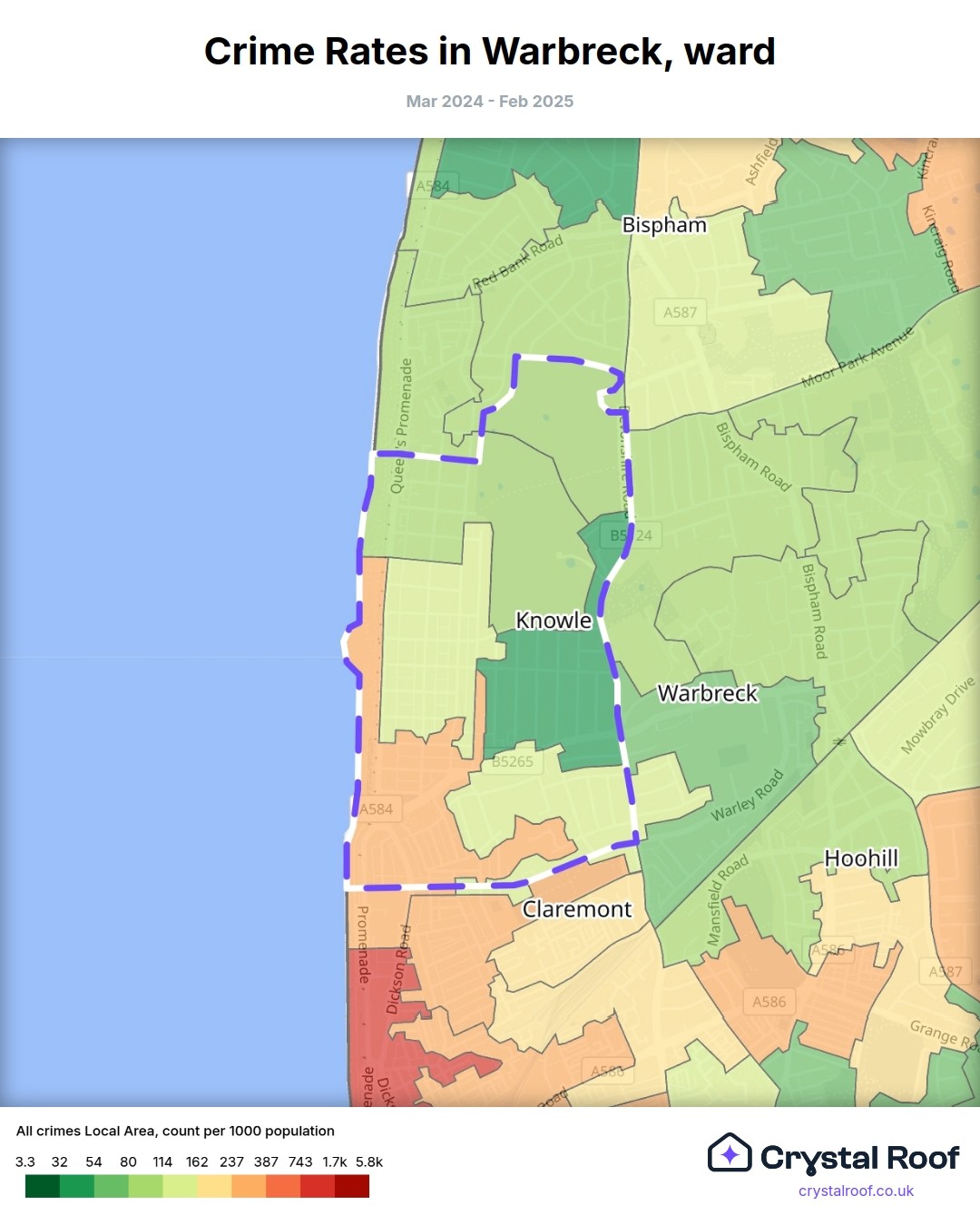 Warbreck, (ward) includes areas with the following crime ratings (see map):