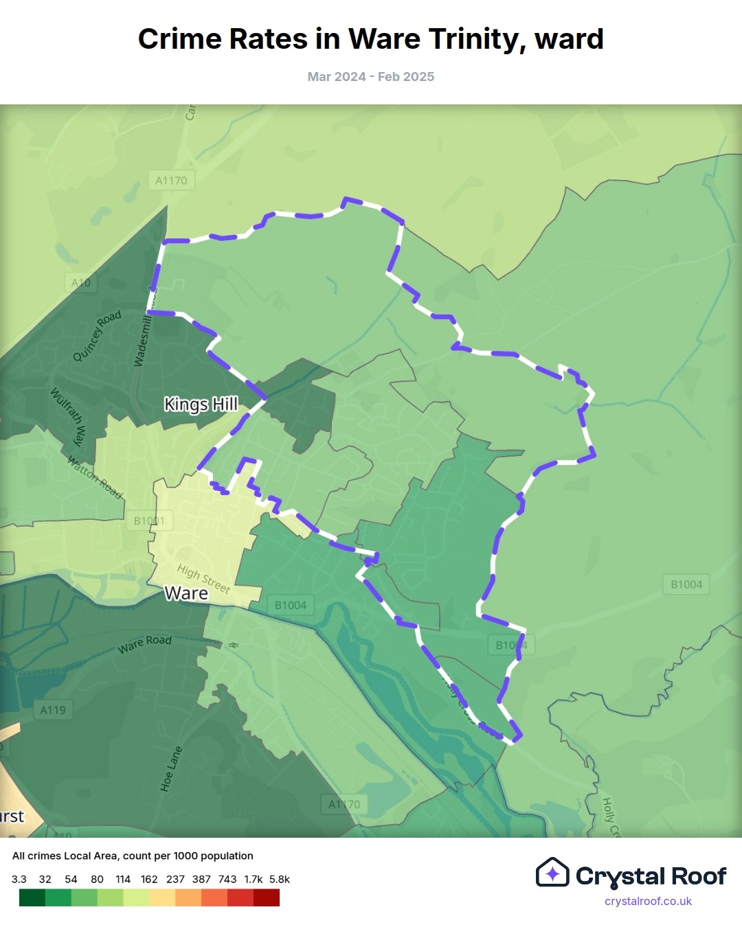 Ware Trinity, (ward) includes areas with the following crime ratings (see map):