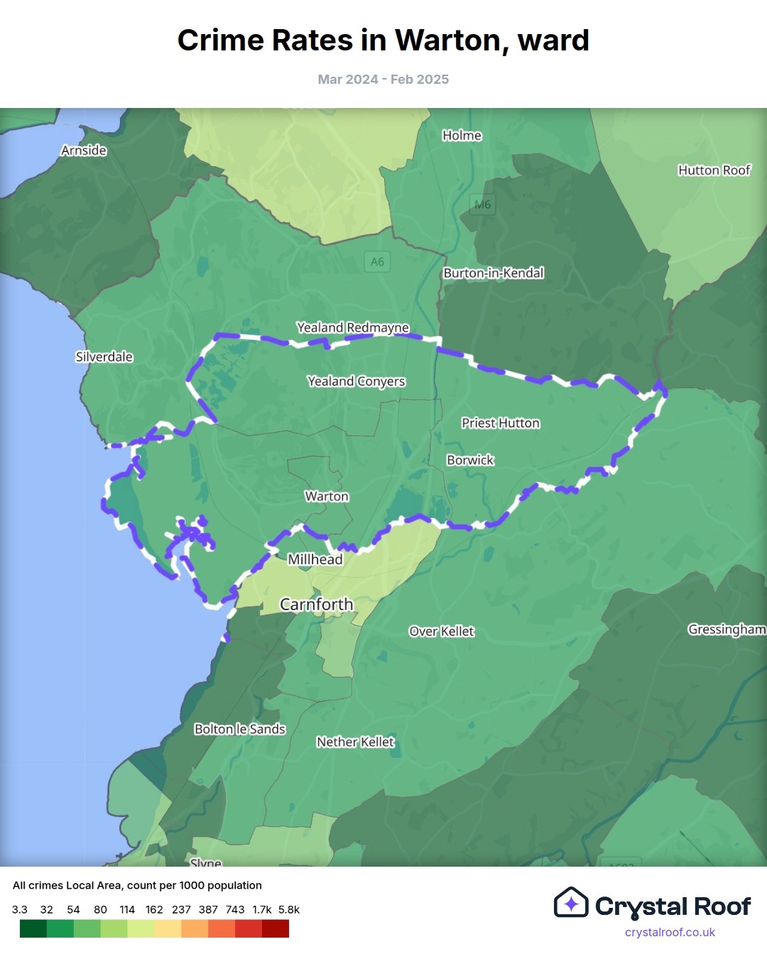 Warton, (ward) includes areas with the following crime ratings (see map):