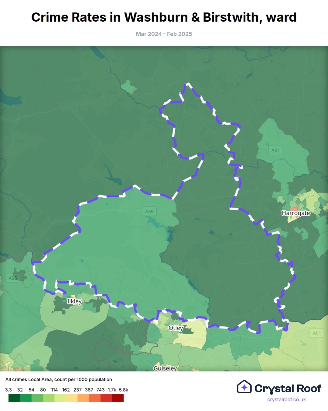 Washburn & Birstwith, (ward) includes areas with the following crime ratings (see map):