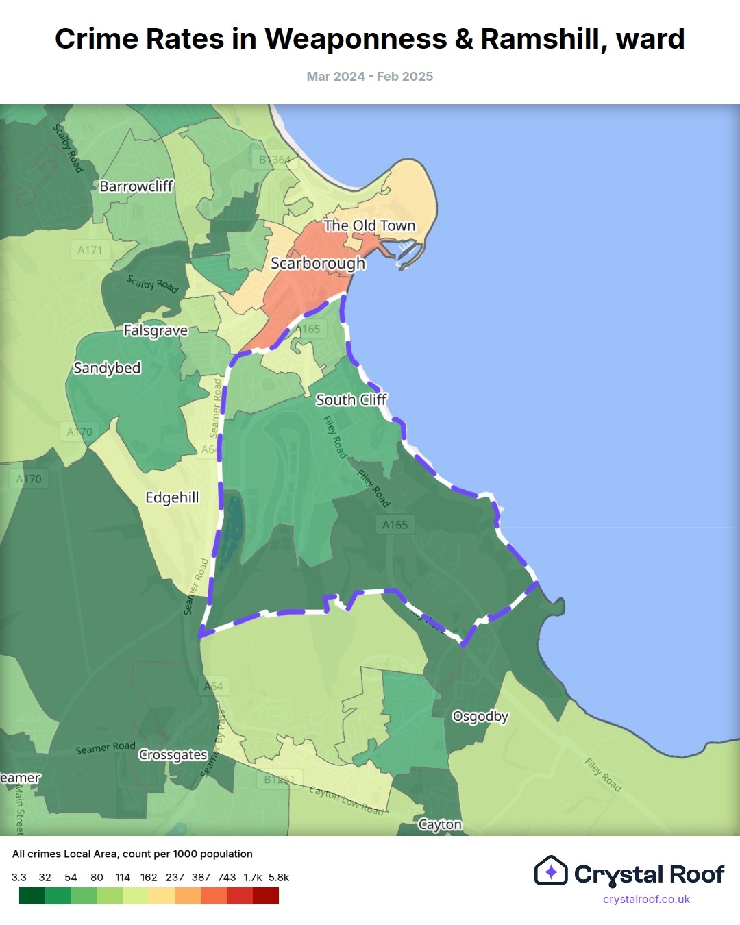 Weaponness & Ramshill, (ward) includes areas with the following crime ratings (see map):