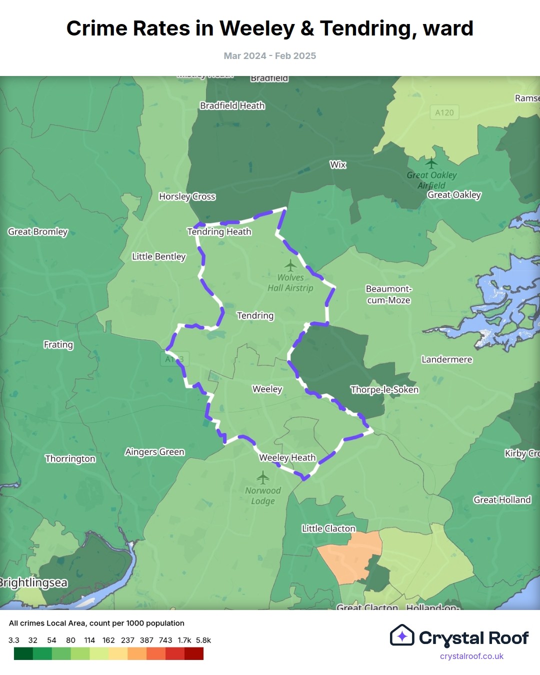 Weeley & Tendring, (ward) includes areas with the following crime ratings (see map):