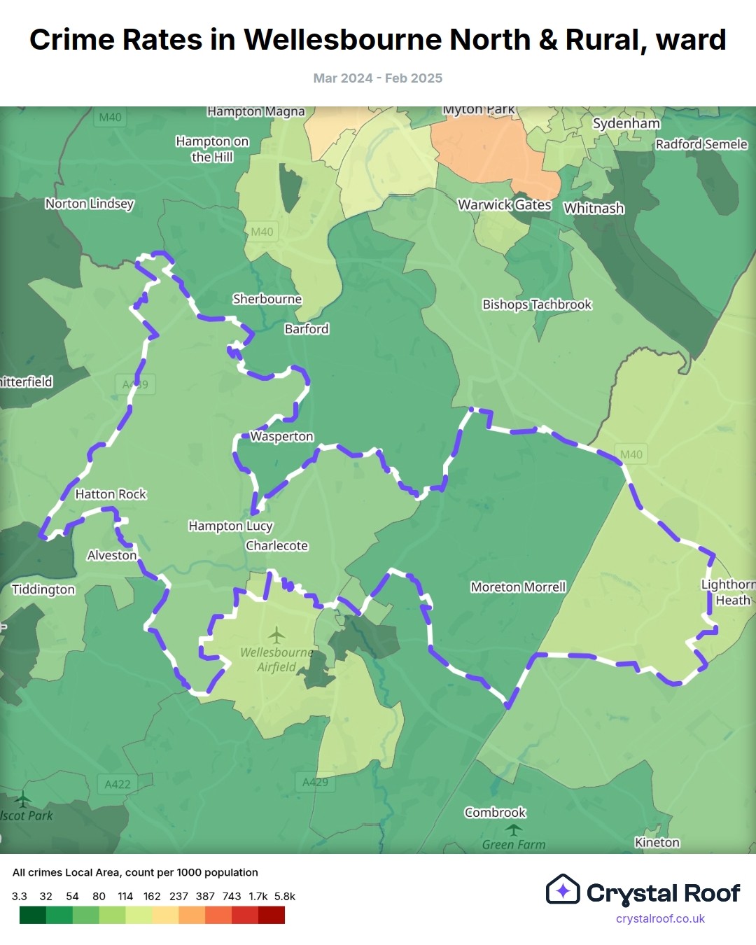 Wellesbourne North & Rural, (ward) includes areas with the following crime ratings (see map):