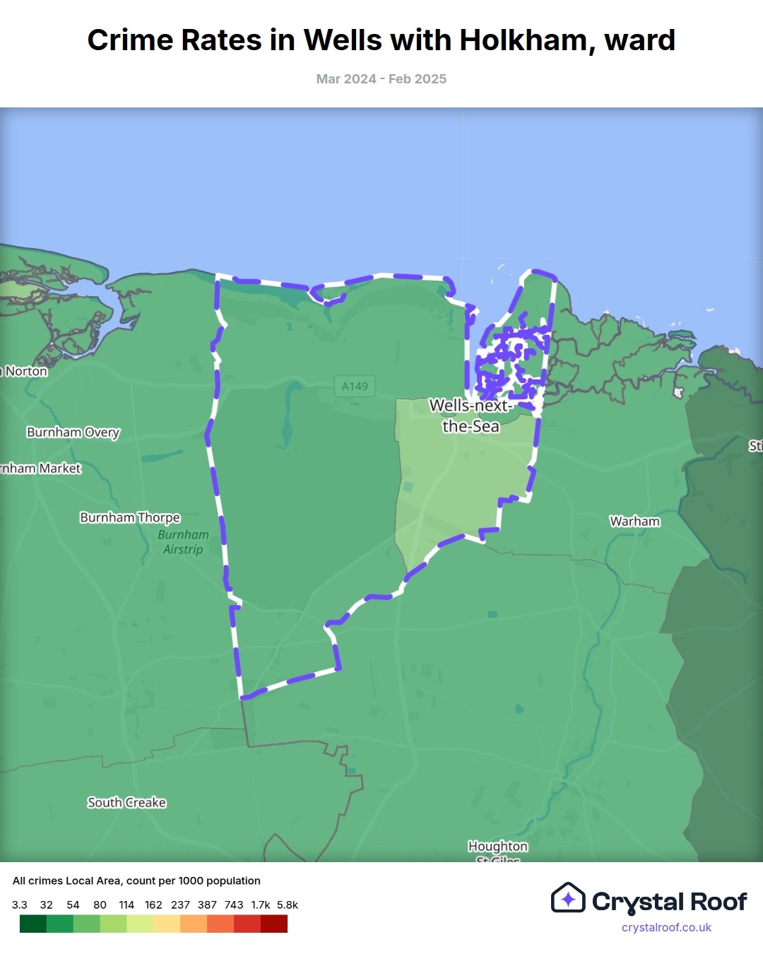 Wells with Holkham, (ward) includes areas with the following crime ratings (see map):