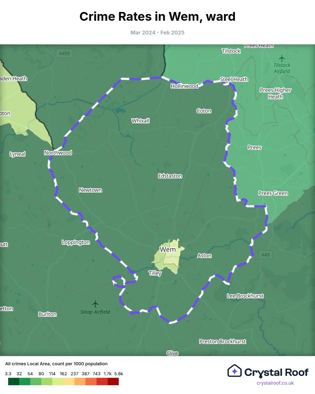 Wem, (ward) includes areas with the following crime ratings (see map):
