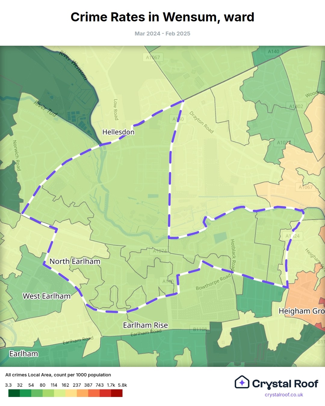 Wensum, (ward) includes areas with the following crime ratings (see map):