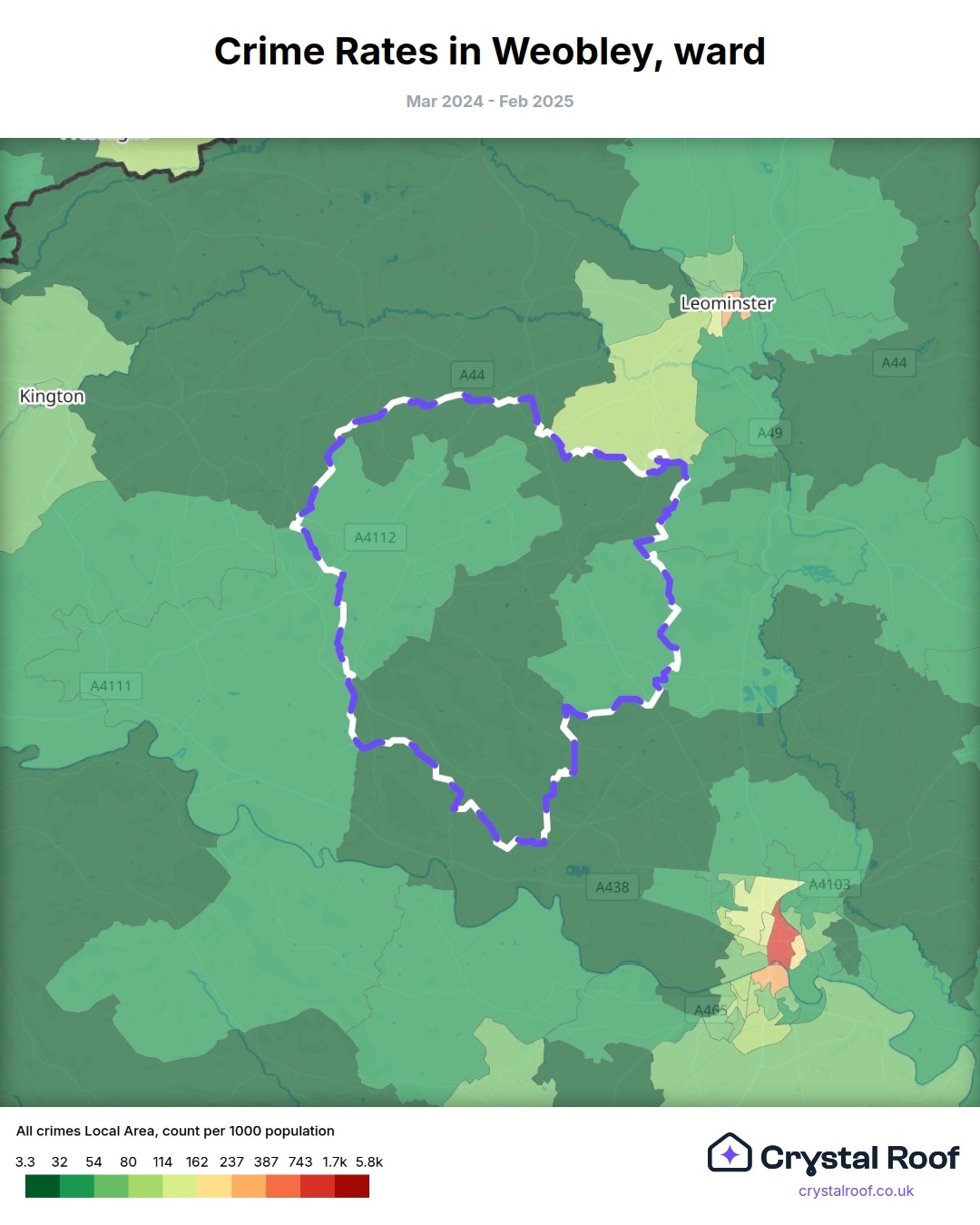 Weobley, (ward) includes areas with the following crime ratings (see map):