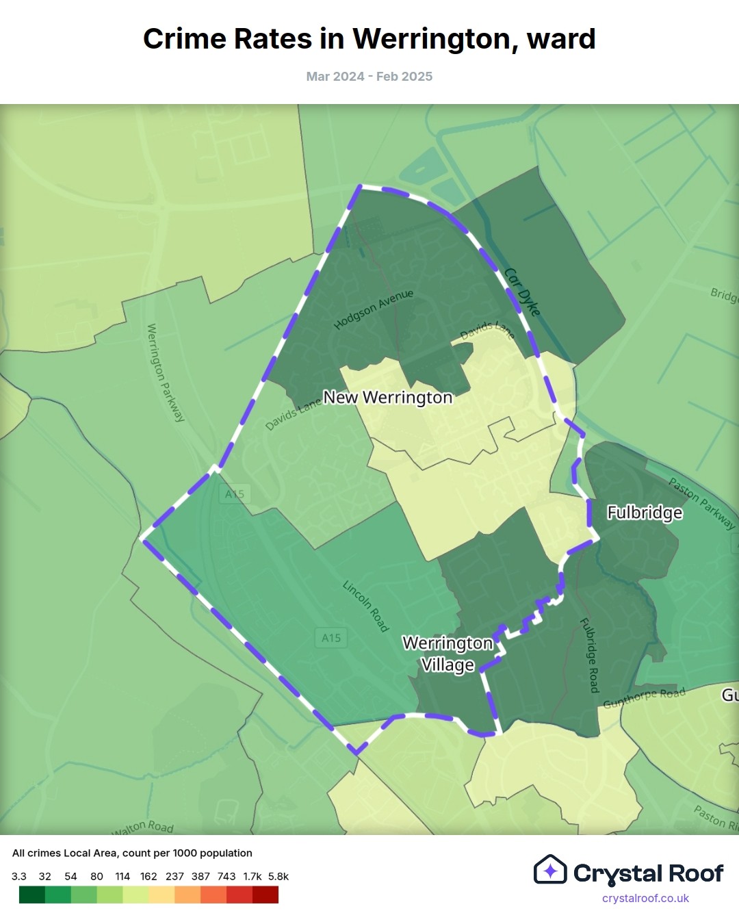 Werrington, (ward) includes areas with the following crime ratings (see map):