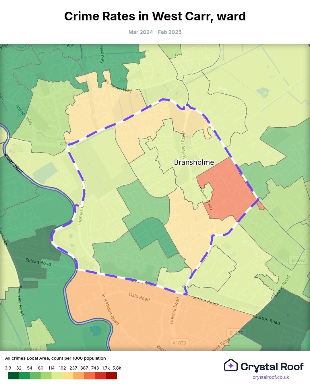 West Carr, (ward) includes areas with the following crime ratings (see map):