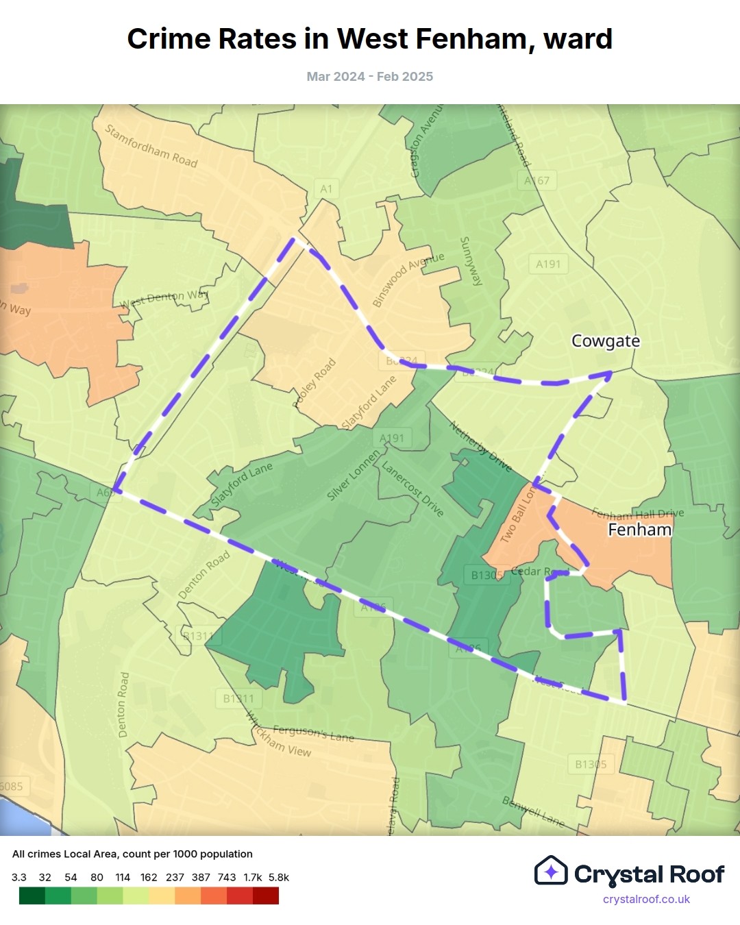 West Fenham, (ward) includes areas with the following crime ratings (see map):