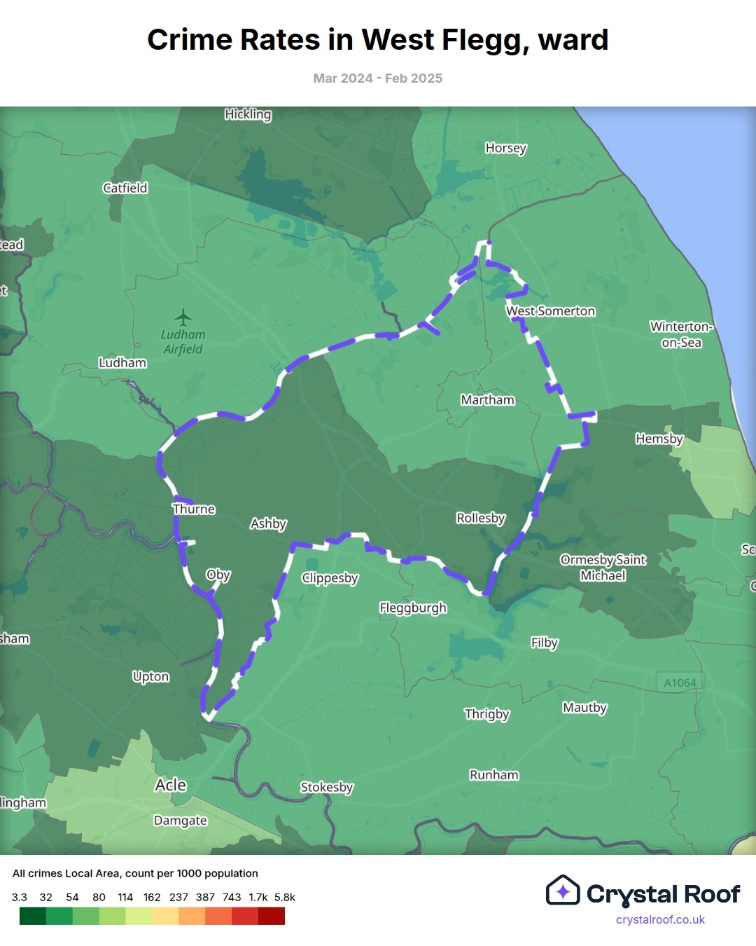 West Flegg, (ward) includes areas with the following crime ratings (see map):