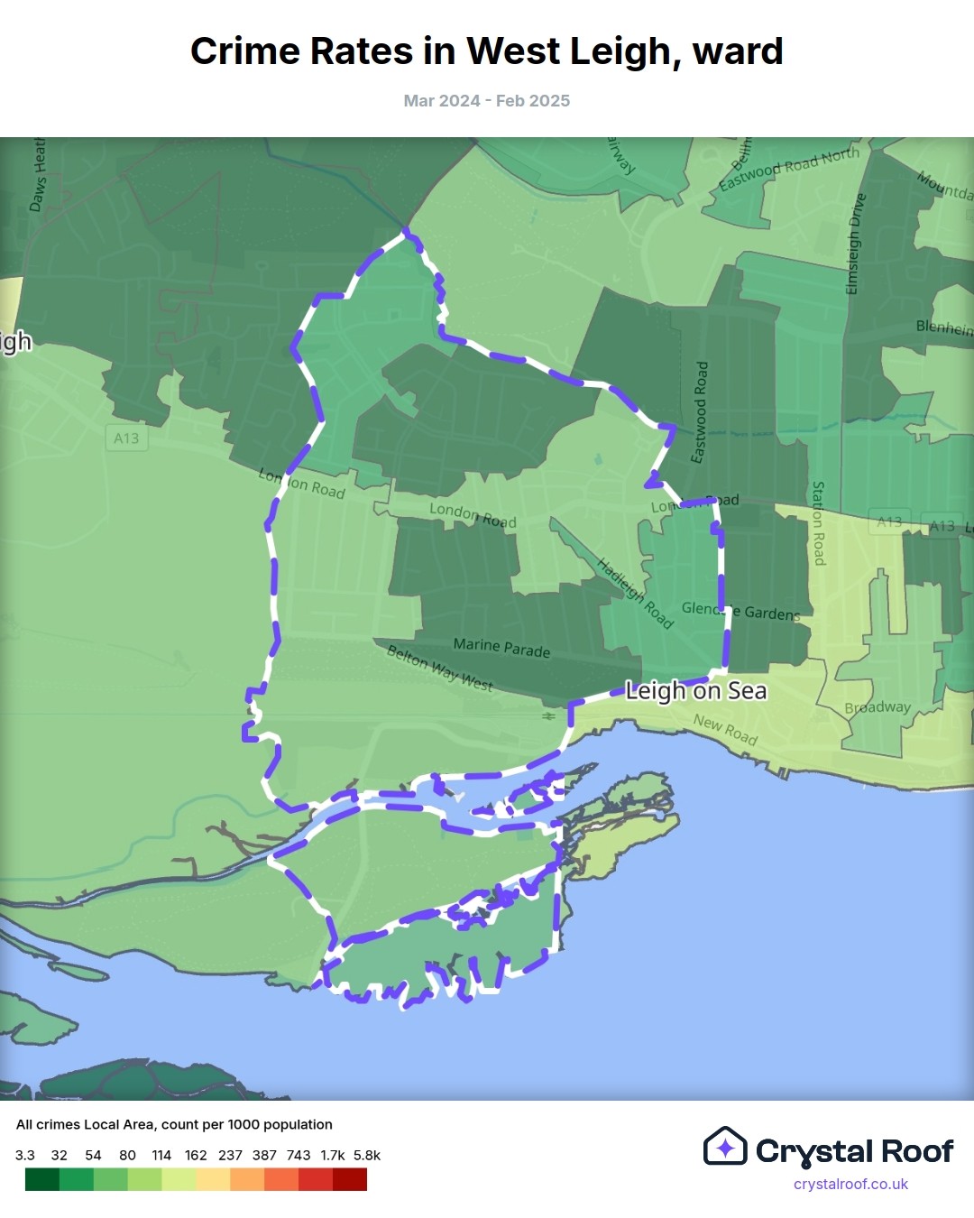 West Leigh, (ward) includes areas with the following crime ratings (see map):