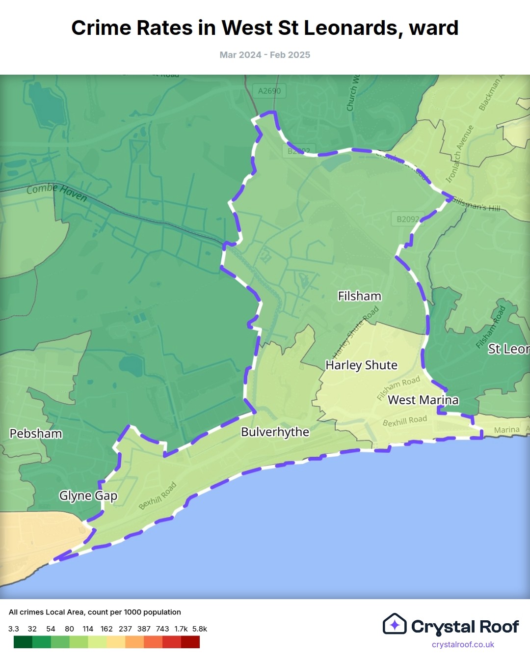 West St Leonards, (ward) includes areas with the following crime ratings (see map):