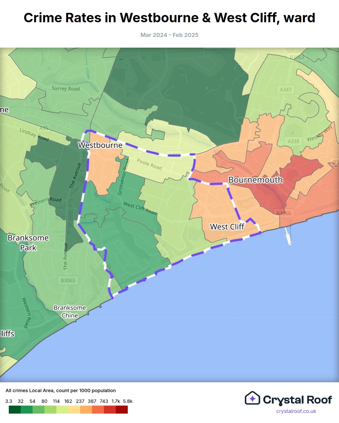 Westbourne & West Cliff, (ward) includes areas with the following crime ratings (see map):