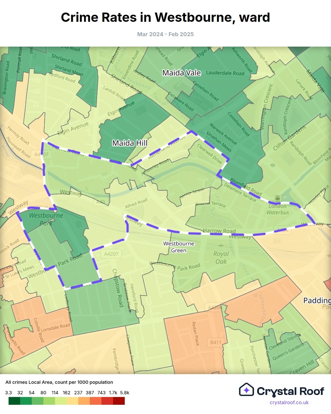 Westbourne, (ward) includes areas with the following crime ratings (see map):